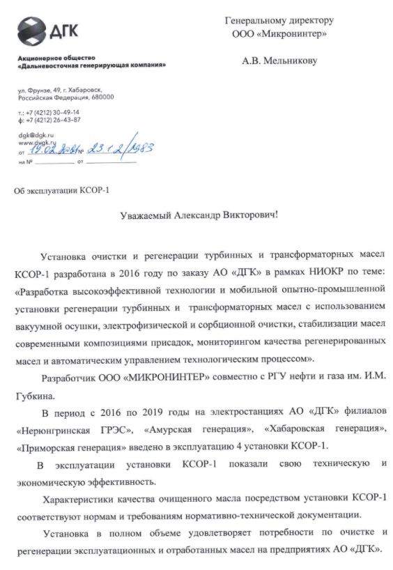 Наша компания является членом ассоциации "Микронинтер", занимающейся разработкой, производством и внедрением оборудования по сверхглубокой очистке и регенерации энергетических и промышленных масел